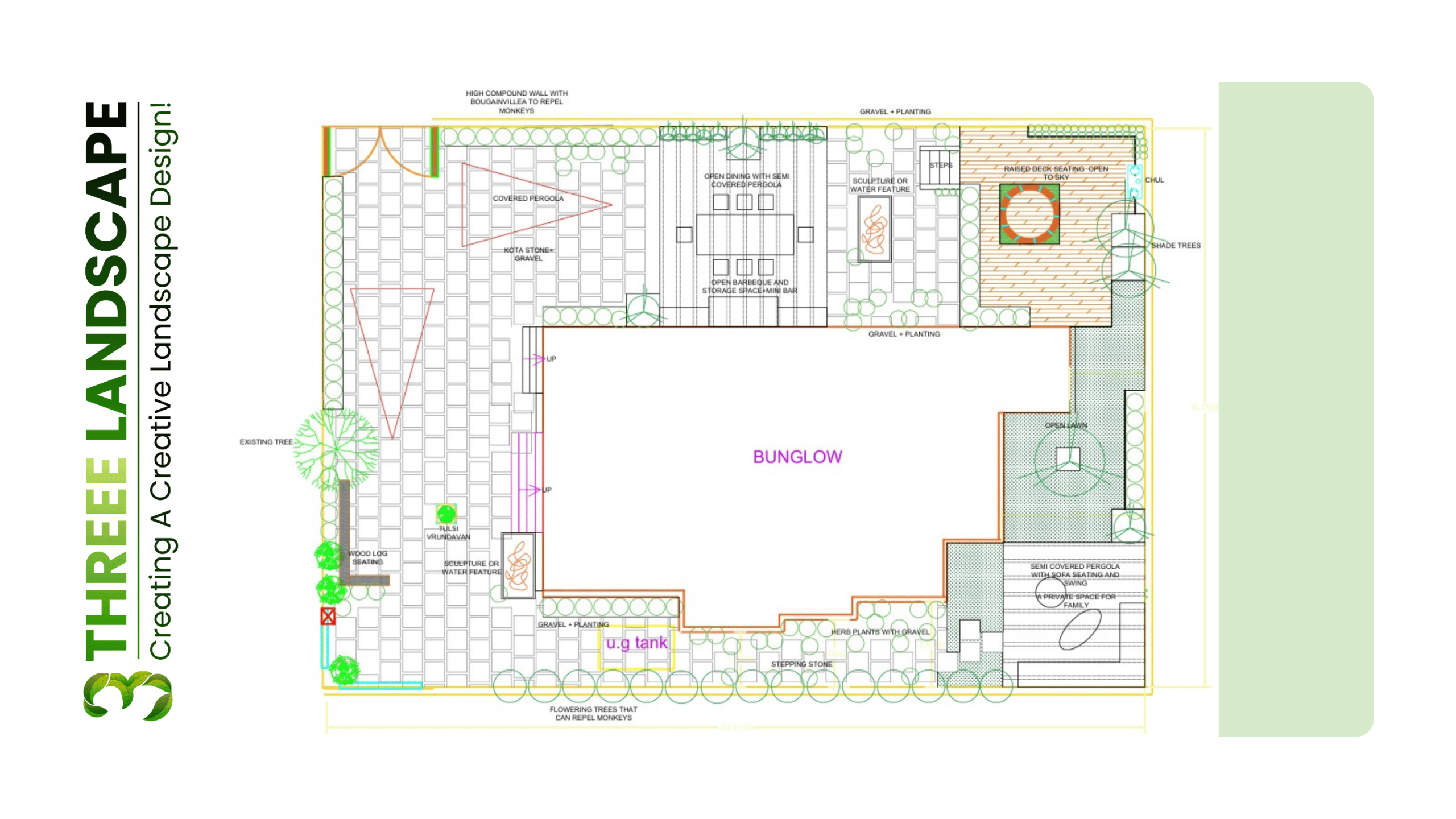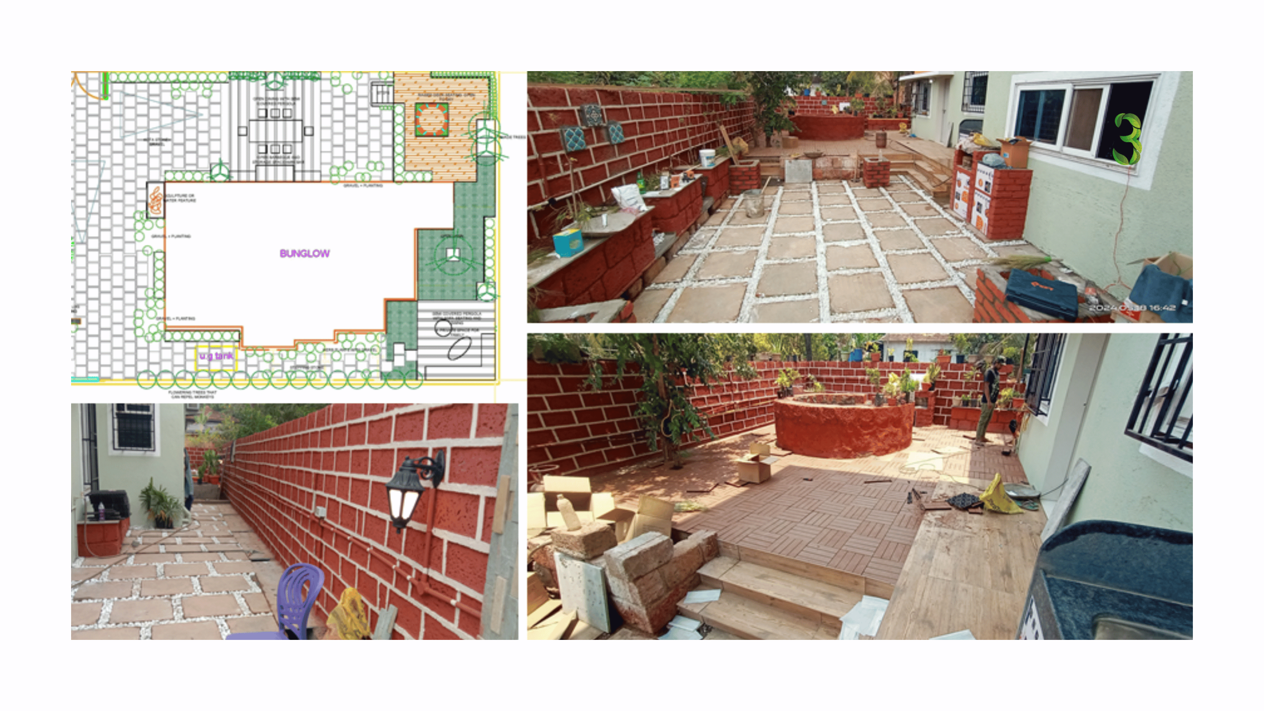 A beautiful 3,000 sq.ft. landscape designed for Mr. Ajay Shirke’s bungalow in Dapoli, crafted to host family gatherings and celebrations.
