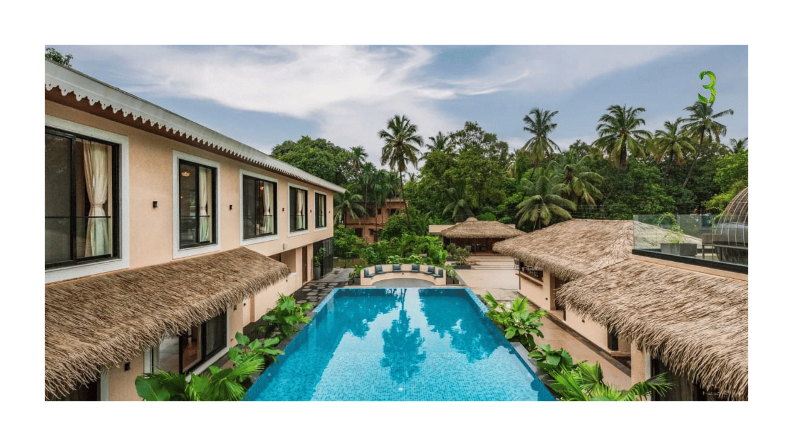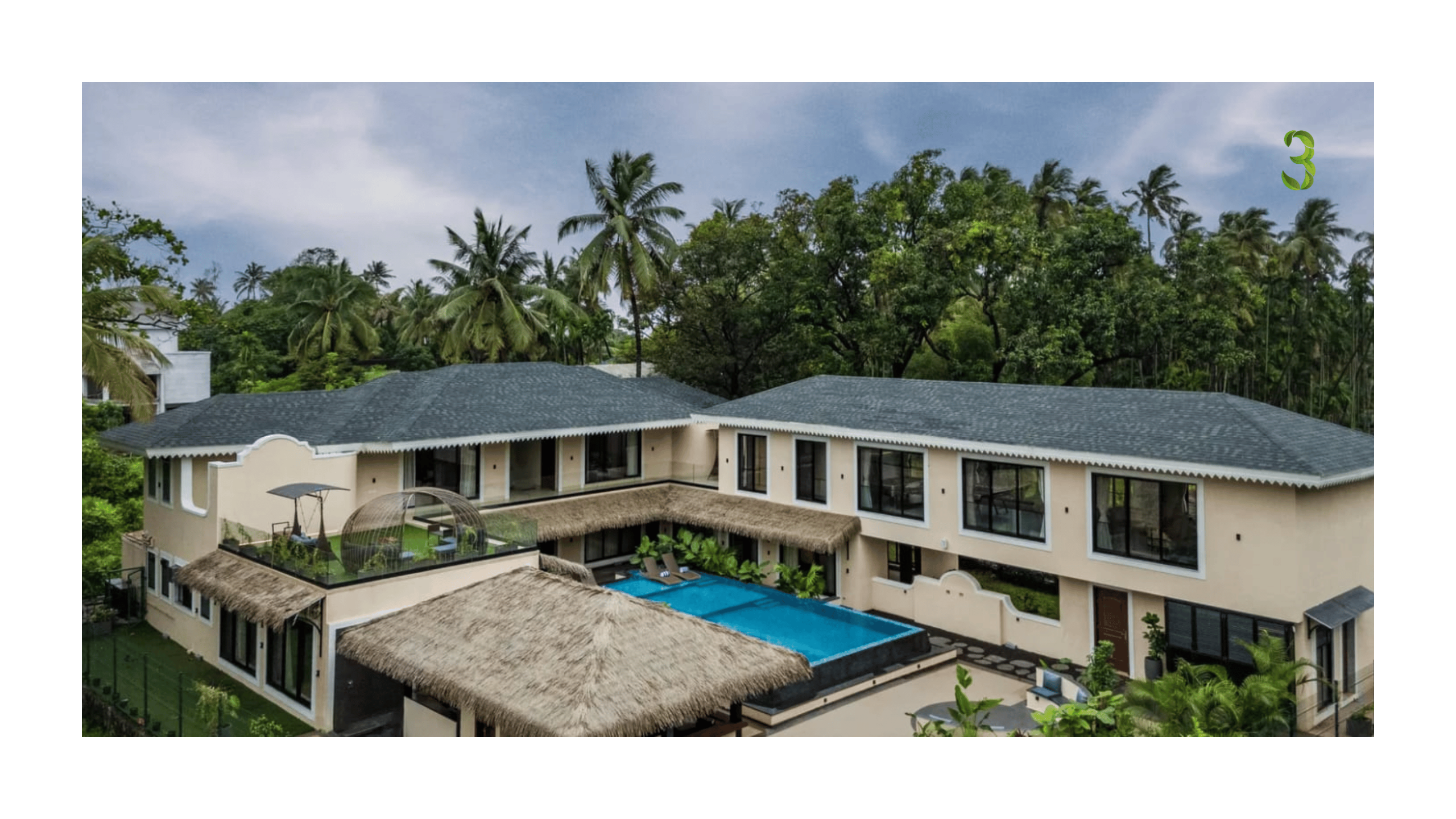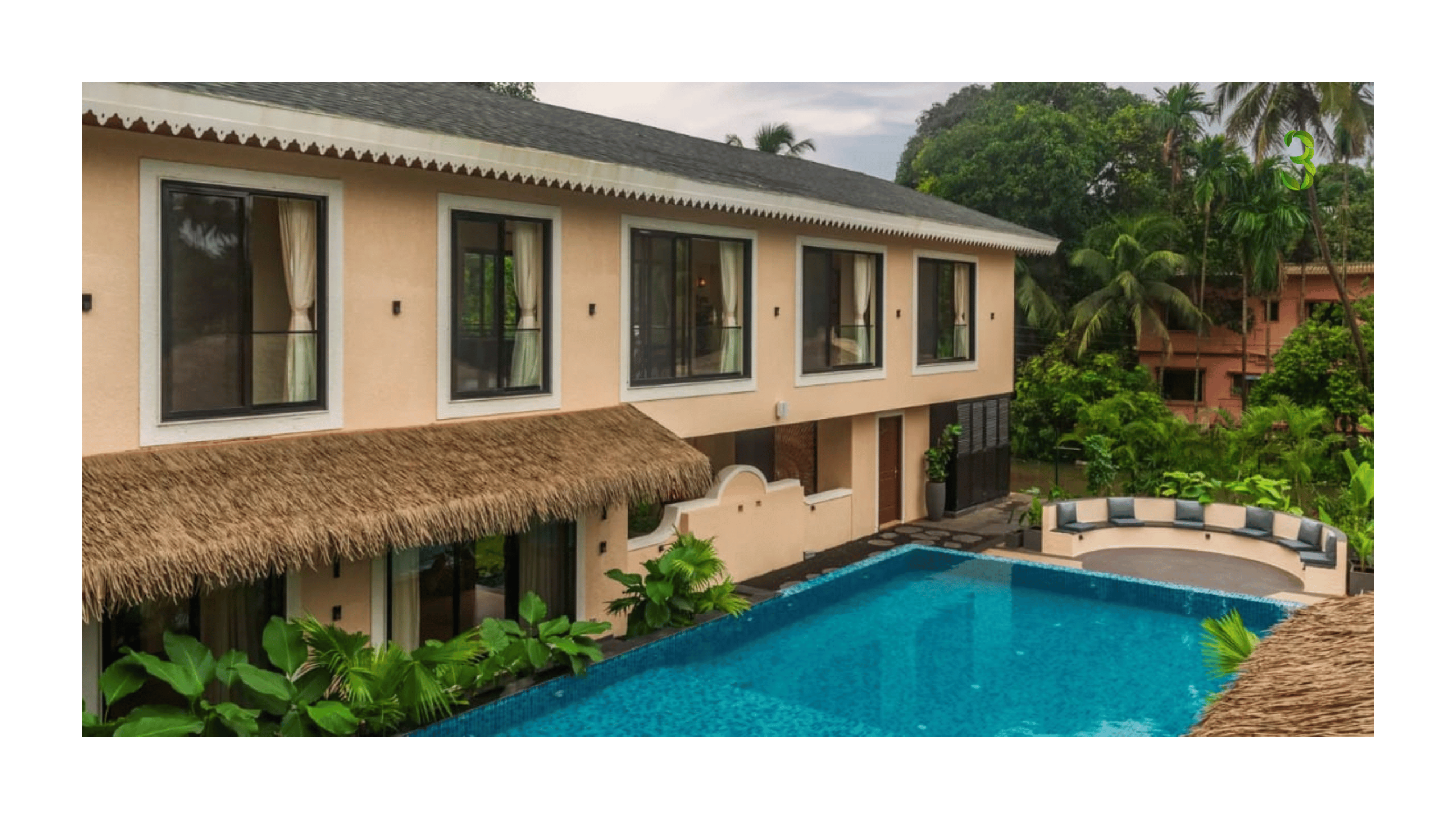 The space features a perfect blend of lush lawns and hardscape, complemented by a cozy fire-place, pergola, BBQ, and dedicated seating zones. Landscaped parking and a welcoming main entrance add functionality, while vines and greenery provide privacy and natural charm – where your bungalow truly meets luxury and nature