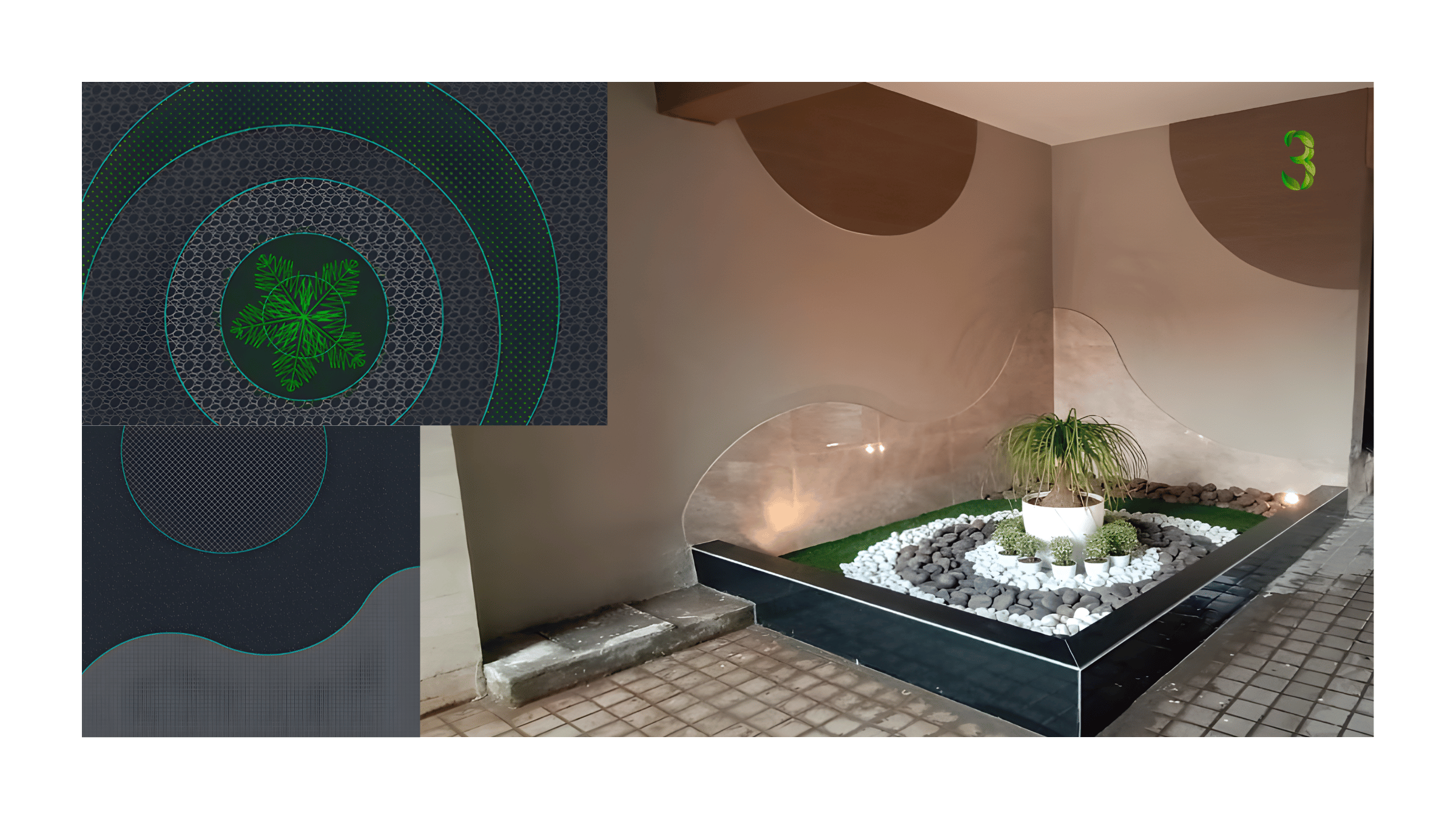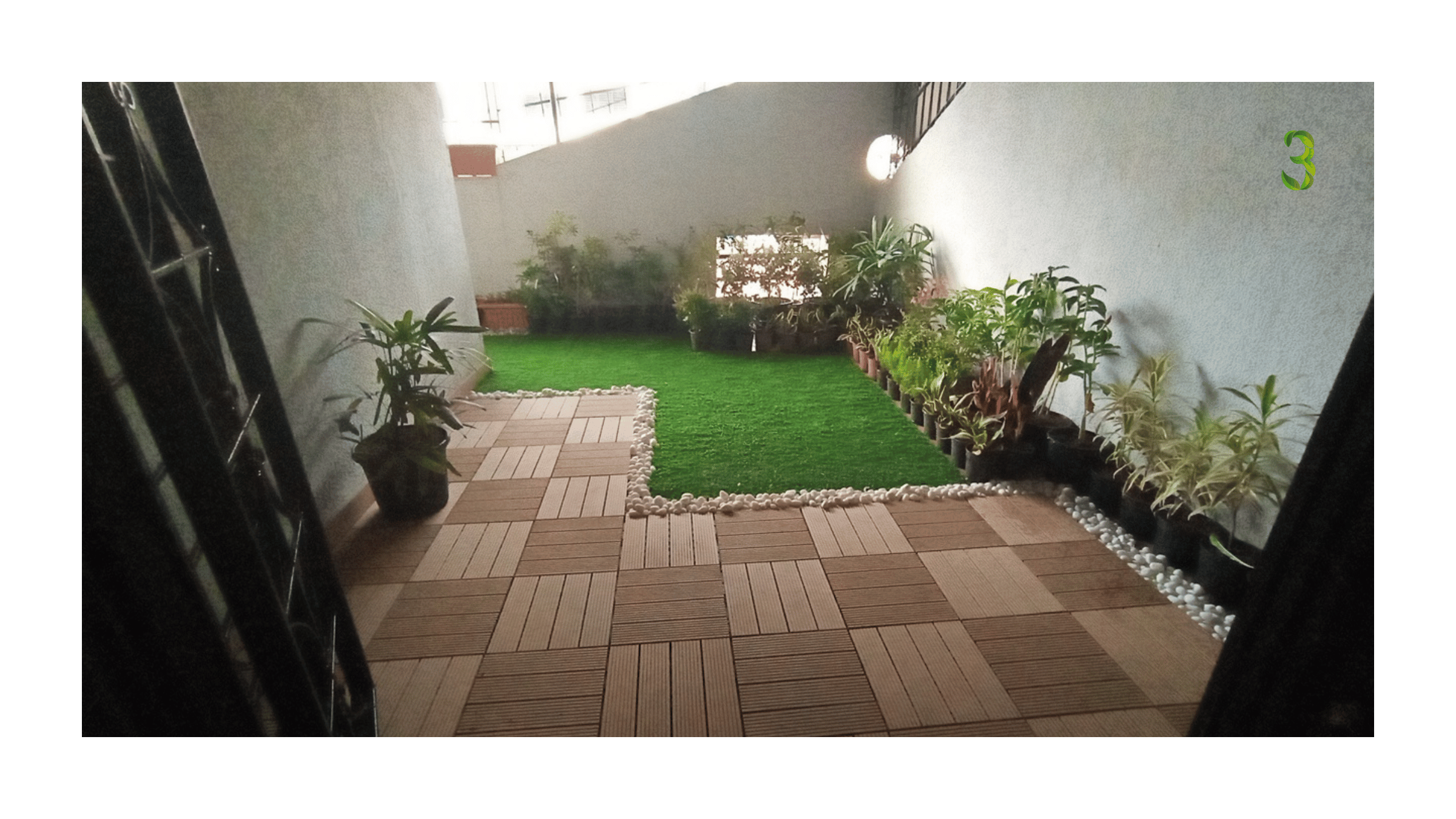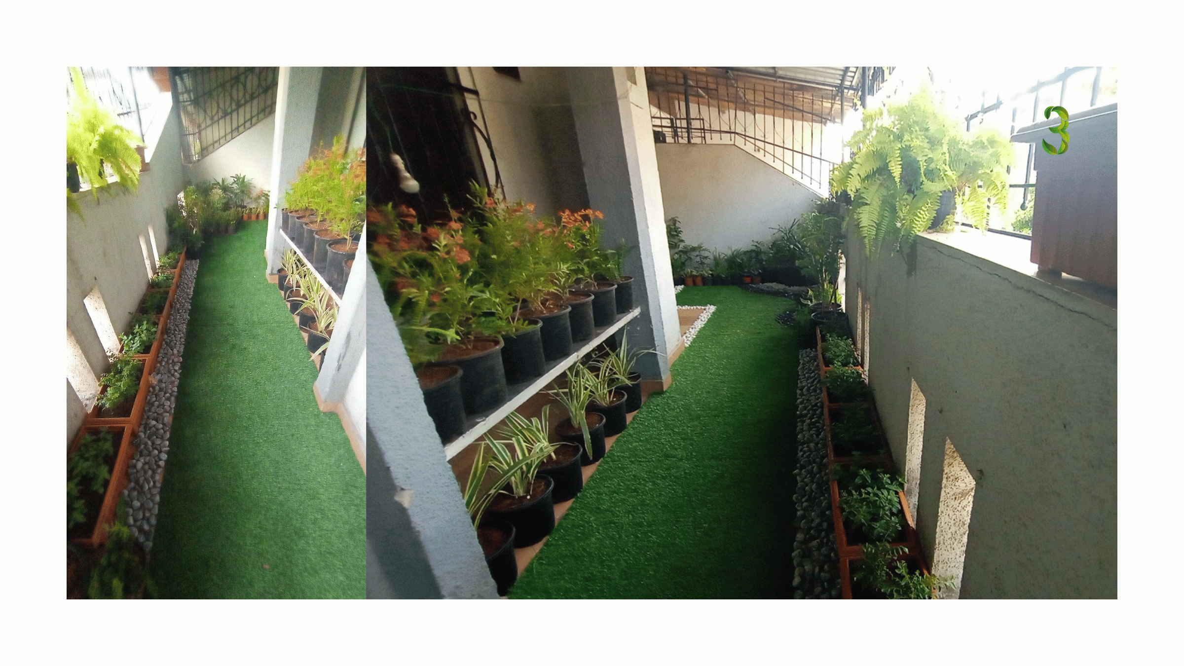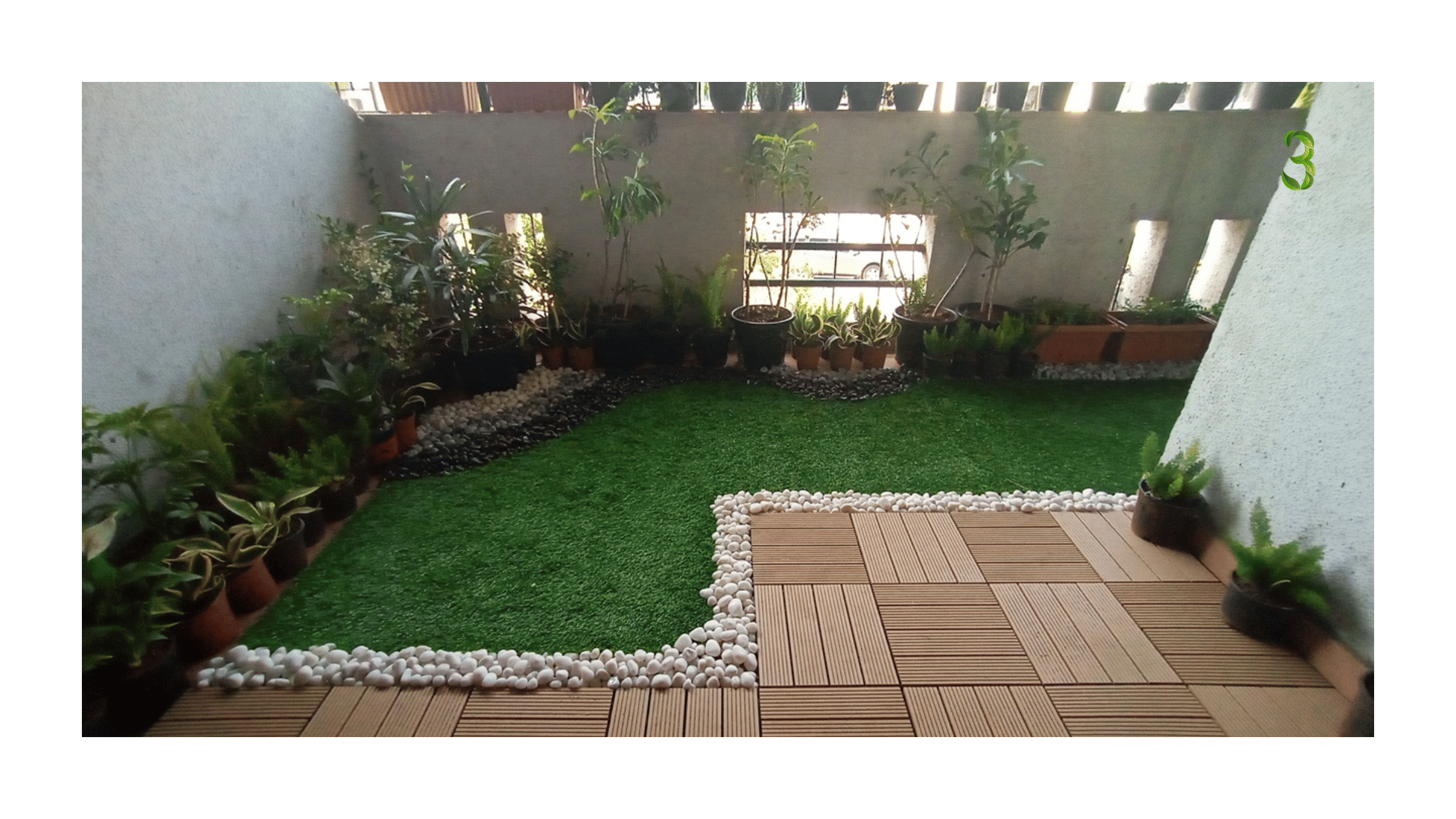 A 90 sq.ft. dead corner transformed into a stunning blend of vertical and hard-soft landscaping.